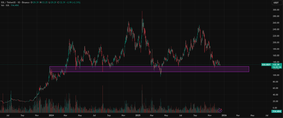 SOL seems to be finding support at its key $110-$125 support zone. Any convincing recovery should happen around this area, and going below the zone might hint at further downside.