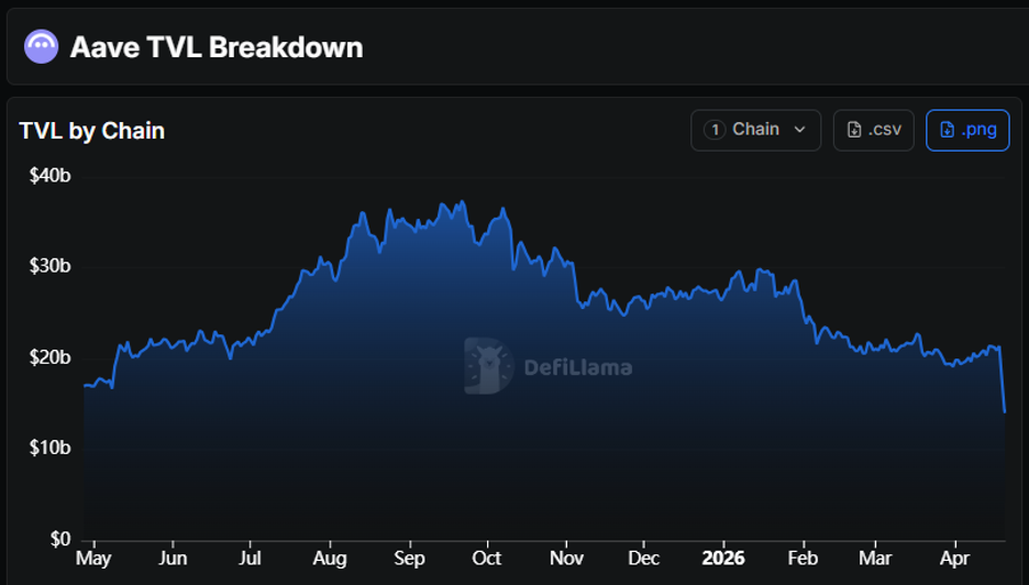 Chart: AAVE protocol, total value locked down significantly after Kelp DAO exploit:
