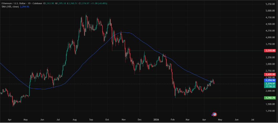 Bitcoin is trading near $76,000 as of writing (April 21, 2026), having recovered meaningfully from lows near $66,000–$68,000 in early April but pulling back from recent highs near $78,000. Ethereum trades around $2,300, while Solana has declined to around $85. Total crypto market capitalization stands at approximately $2.5 trillion, with Bitcoin dominance at ~60%. The Fear & Greed Index sits at 33 (Fear), having recovered from an extreme reading of 8 in early April.